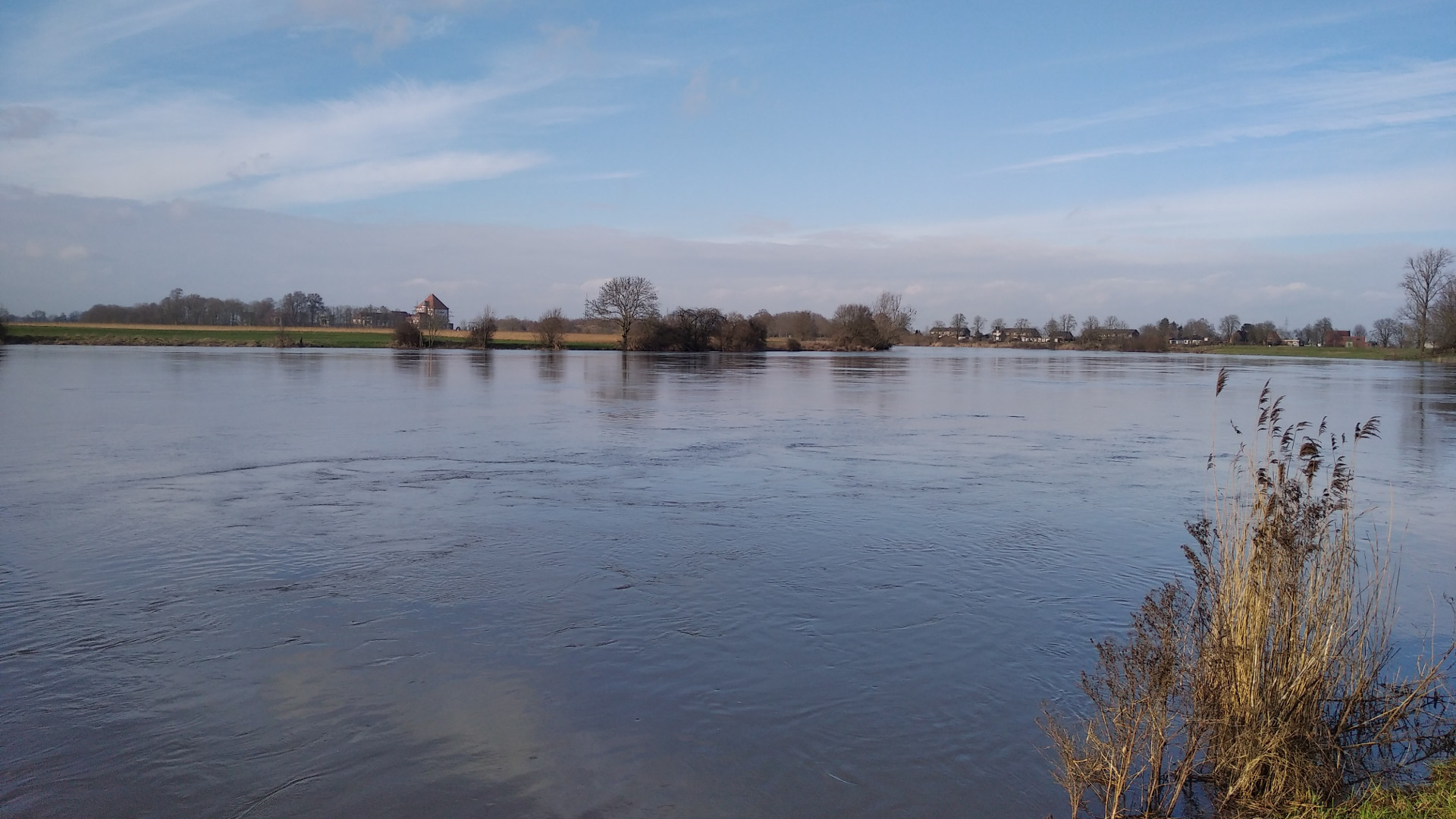 | 02.02 | 4 Nächte | Hitzacker(Elbe) | Nun also wieder im Wendland (und im Westen). Leider sind hier viele Plätze im Winter zu oder noch von der Flutwelle beeinträchtigt. Hier in Hitzacker einen Platz für mein Investitionswochenende gefunden. Kaum im Westen ist die Standardbesetzung für ein WoMo wieder ein Paar und ein Hund. Mir war gar nicht aufgefallen, dass ich jetzt ein paar Wochen keinen Köter gesehen (und gehört) habe. Heute war mein Fuß erstmals so abgeschwollen, dass ich wieder in einen normalen Schuh hineinkam. Gleich mal einen (kleinen) Spaziergang gehumpelt. Hohe Elbe und Rathaus in Hitzacker |