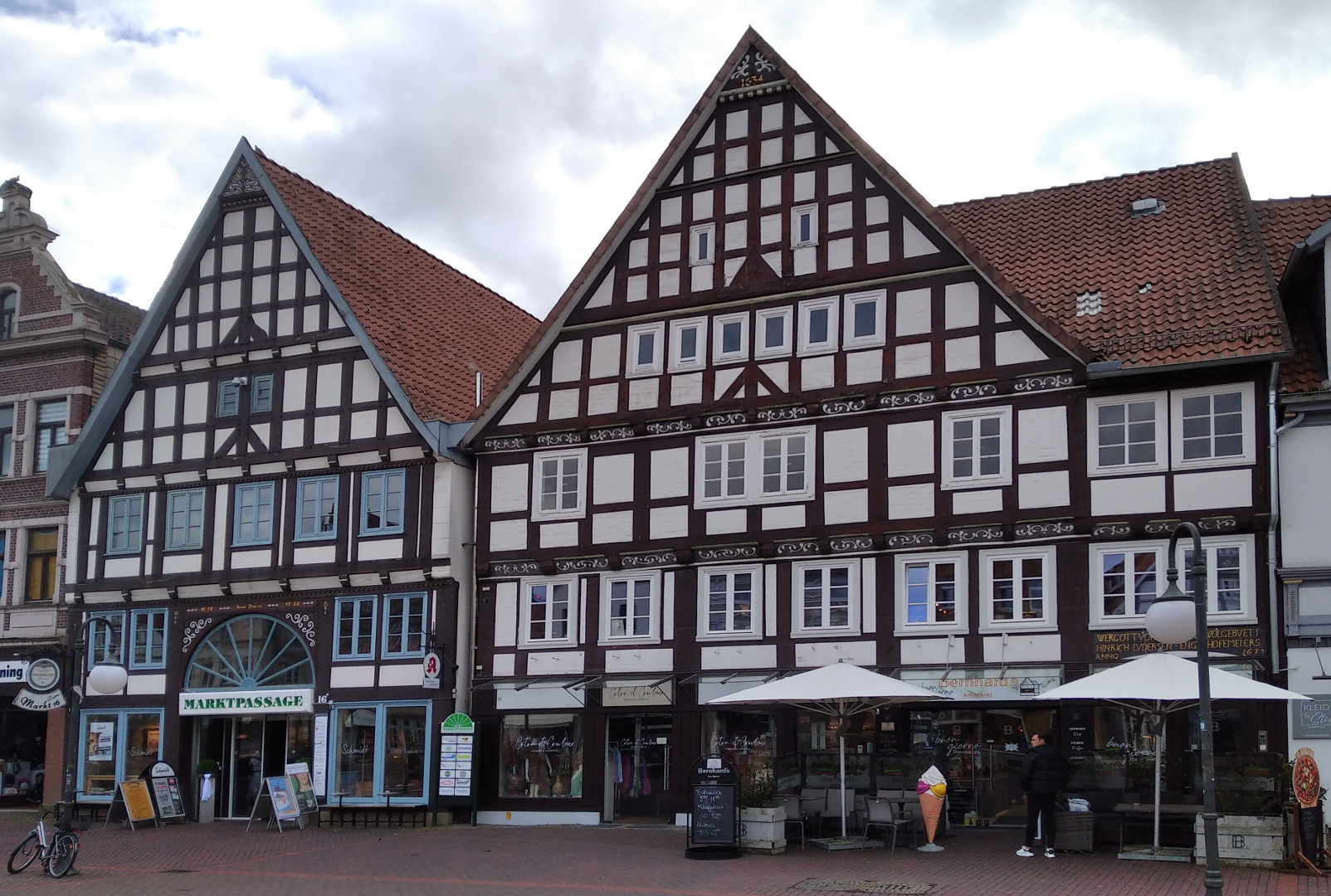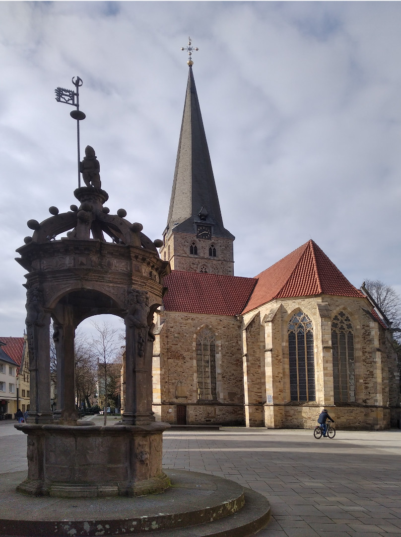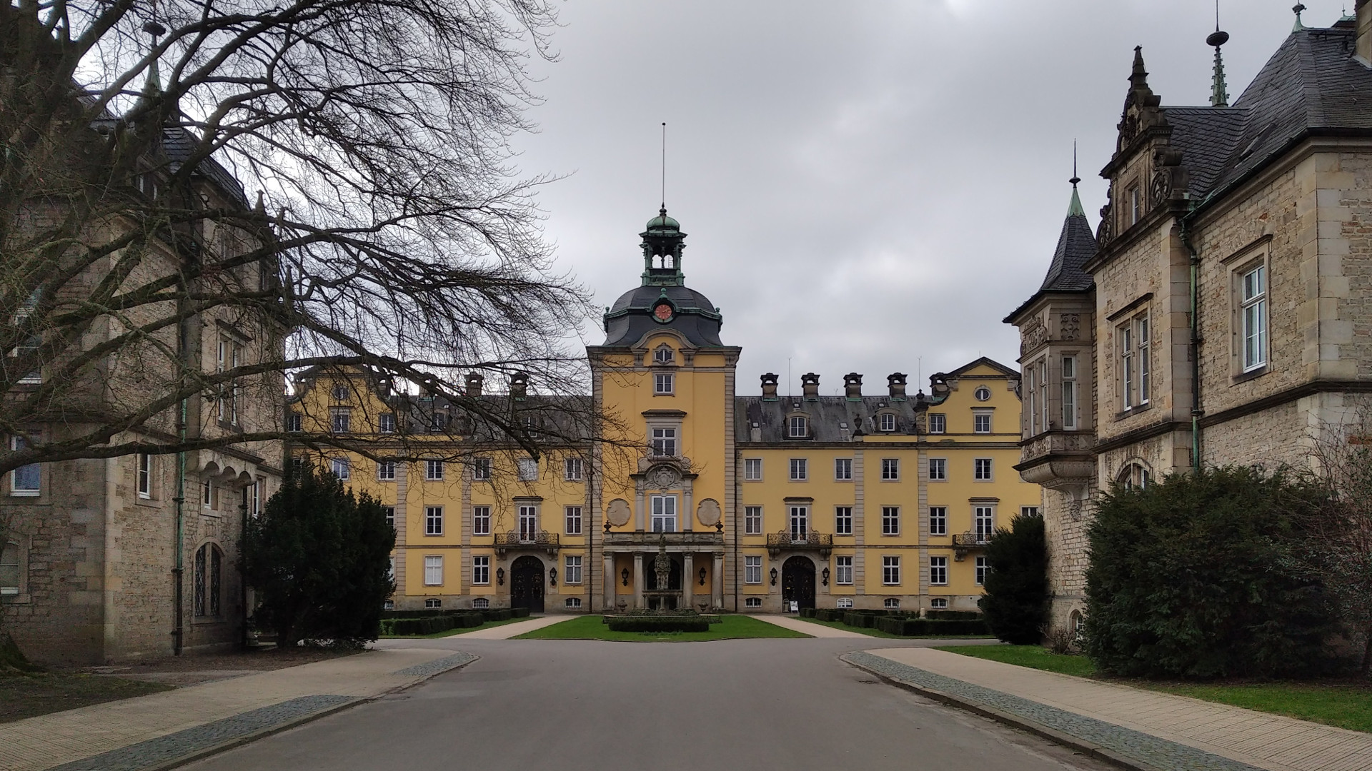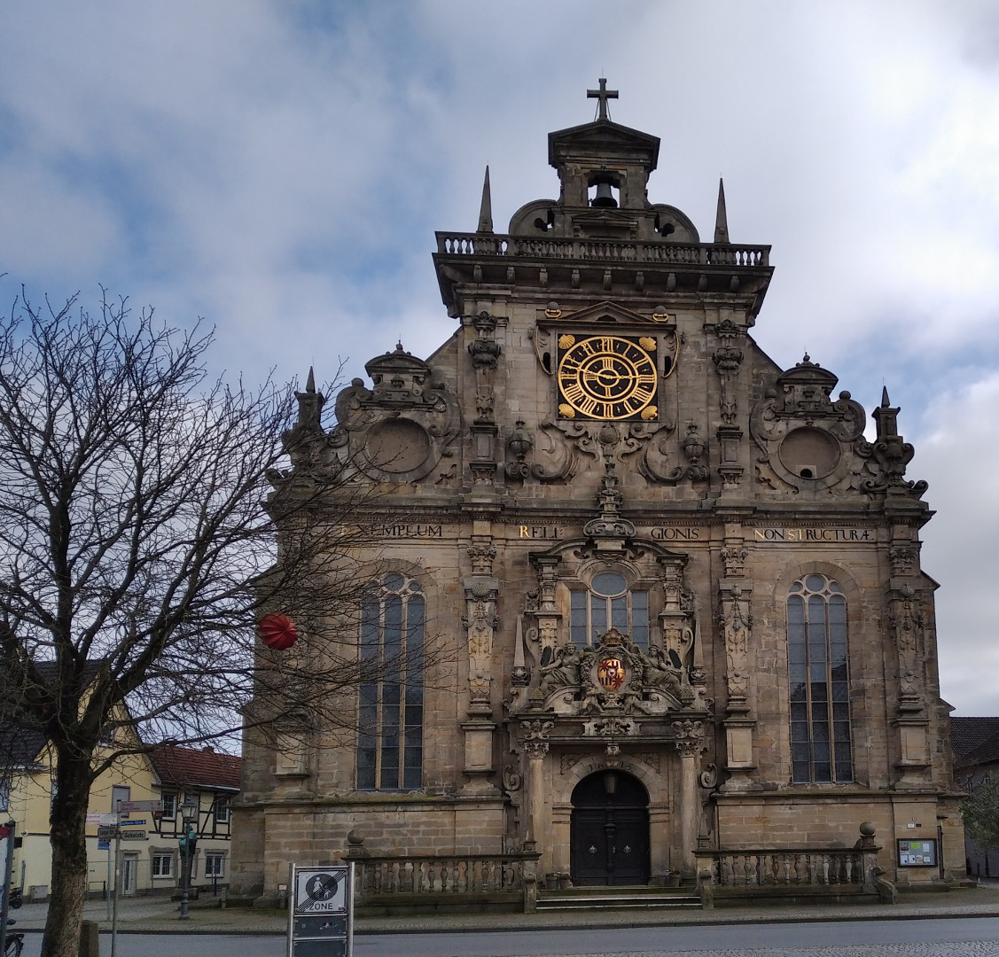 | 27.02 | 2 Nächte | Bückeburg | Nun also auf dem Stellplatz des Fürsten zu Schaumburg-Lippe (sehr schön angelegt und gut organisiert) am Schlosspark. Bückeburg kenne ich natürlich aus meiner Mindener Zeit sehr gut. Im Sommer war das die Standard-Nachmittags-Fahrradtour: Ein Eis in Bückeburg. Hier gibt es ein super Eiskaffee, jetzt ist es allerdings saisonbedingt zu. Natürlich muss man dem Feudalismus keine Träne nachweinen, aber eines muss man zugeben: Zum Einen ist Bückeburg für seine Größe eine außergewöhnlich lebendige und freundliche Stadt, auch durchaus progressiv angehaucht (Bioladen, Unverpackt-Laden, ...) und auffällig florierendem Einzelhandel (genau das was überall woanders von die Hunde geht) und auf der anderen Seite ist es der Sitz eines der letzten aktiven Fürstenhäuser (das Schloss ist bewohnt, die Fürstenfamilie und ich sind im Moment sozusagen Nachbarn). Vielleicht gibt es da keinen Zusammenhang, aber mir scheint zumindest so. Rathaus, Kirche und Schloss Bückeburg |